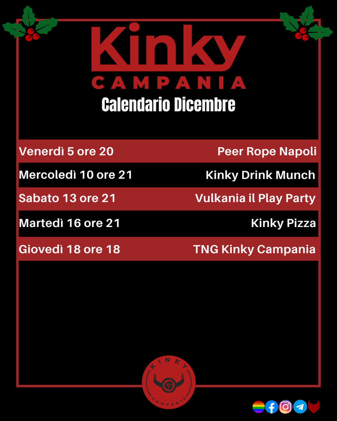 Kinky Campania organizza ogni mese eventi BDSM a Napoli per esplorare in sicurezza e consapevolezza i vari aspetti dei kink. Gli appuntamenti sono aperti a neofitə, curiosə ed espertə: unisciti a noi per conoscere persone della comunità e divertirti in un ambiente inclusivo e rispettoso!